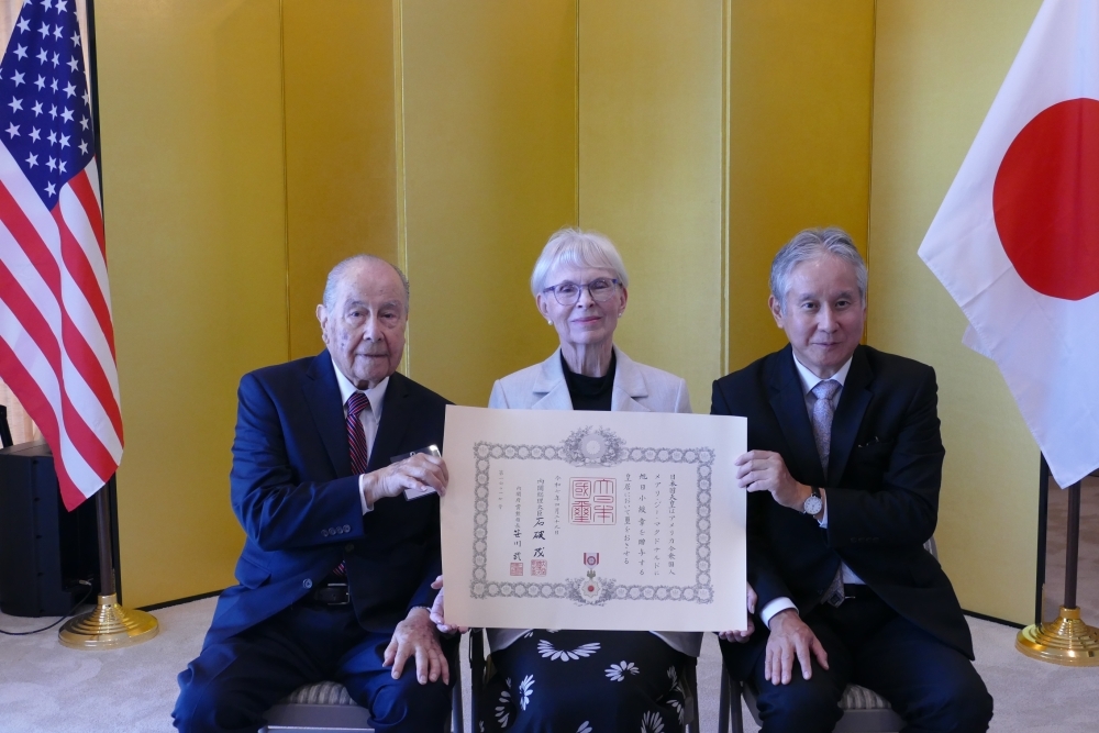 On September 26, 2025, at the Consul General’s Official Residence, the Order of the Rising Sun, Gold Rays with Rosette was conferred to Dr. Mary G. McDonald.