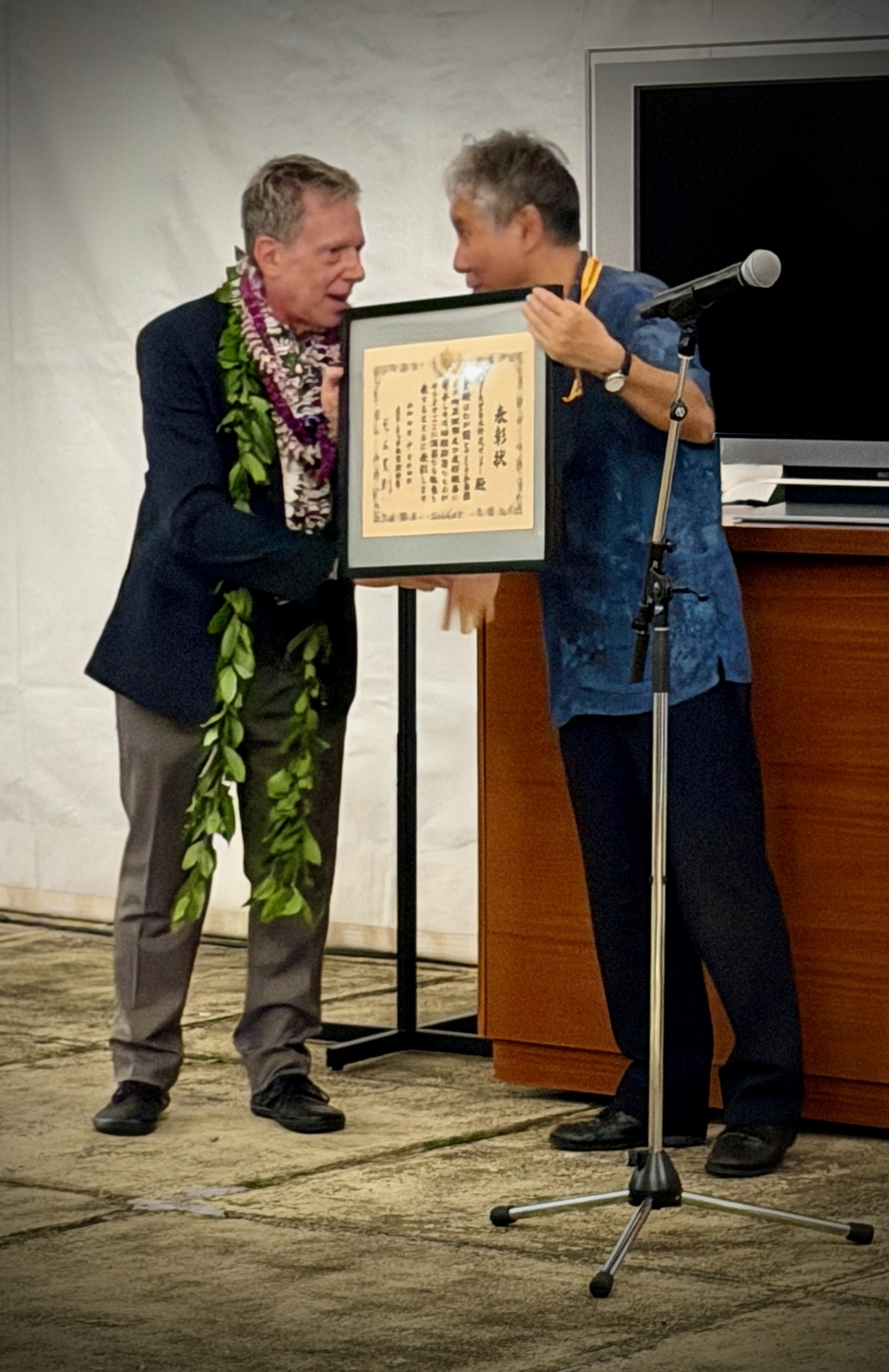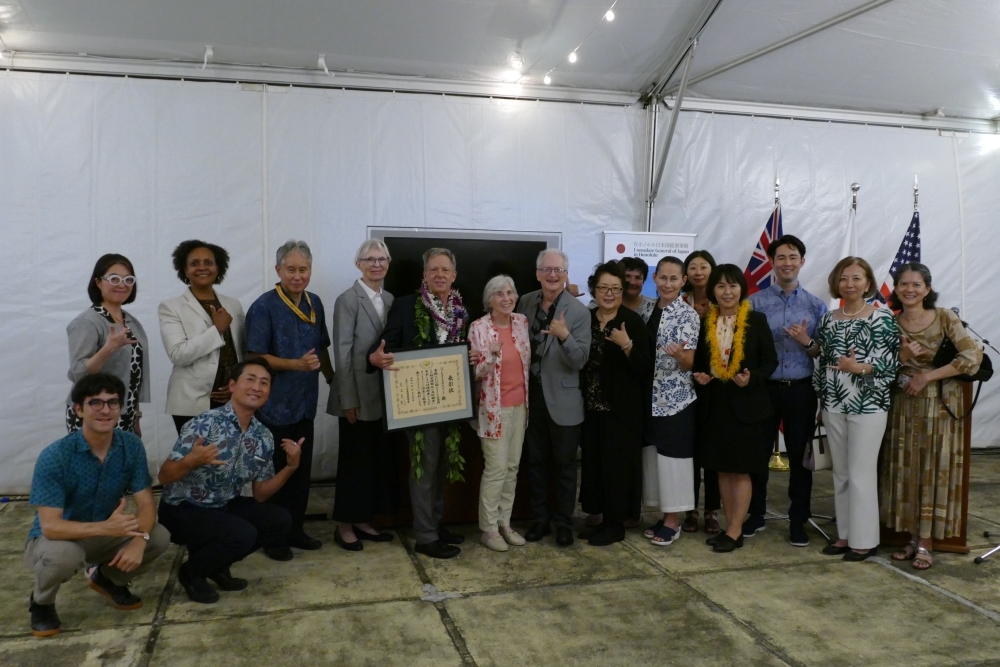 また、ハワイ大学法学部教授で日本研究センター所長のマーク・レヴィン博士は、感謝の意を表すとともに、ハワイ大学における100年以上にわたる日本研究の伝統を支えてきた全ての関係者の尽力を称えました。さらに同センターが日本研究支援・促進と学問の自由の追求という使命に今後も取り組むことへの決意を改めて示しました。