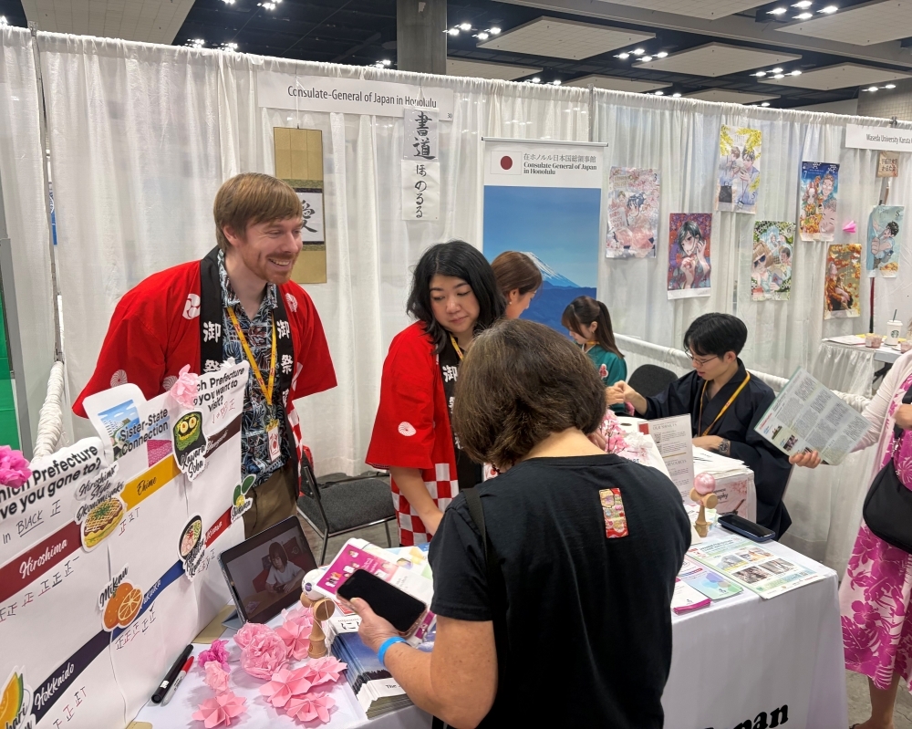 ハワイ・コンベンション・センターにて総領事館ブースを出展し、日本や日本文化の紹介、訪日観光の促進、当館の活動について広報活動を行いました。ブースでは楓書道院ハワイ校のご協力のもと書道体験コーナーを設置し、多くの来場者に筆を持って実際に書道を体験していただきました。また、日本に関するパネル展示やパンフレット配布も行い、子どもから大人まで幅広い世代の来場者に日本文化への理解と関心を深めていただく機会となりました。