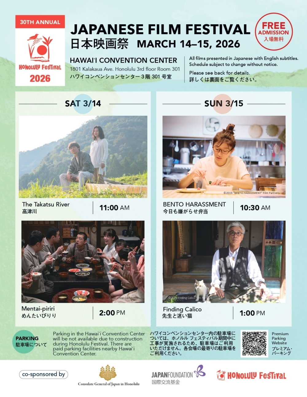 さらに、ホノルルフェスティバル財団および国際交流基金との共催で「日本映画祭」を開催し、多くの来場者から好評の声をいただきました。